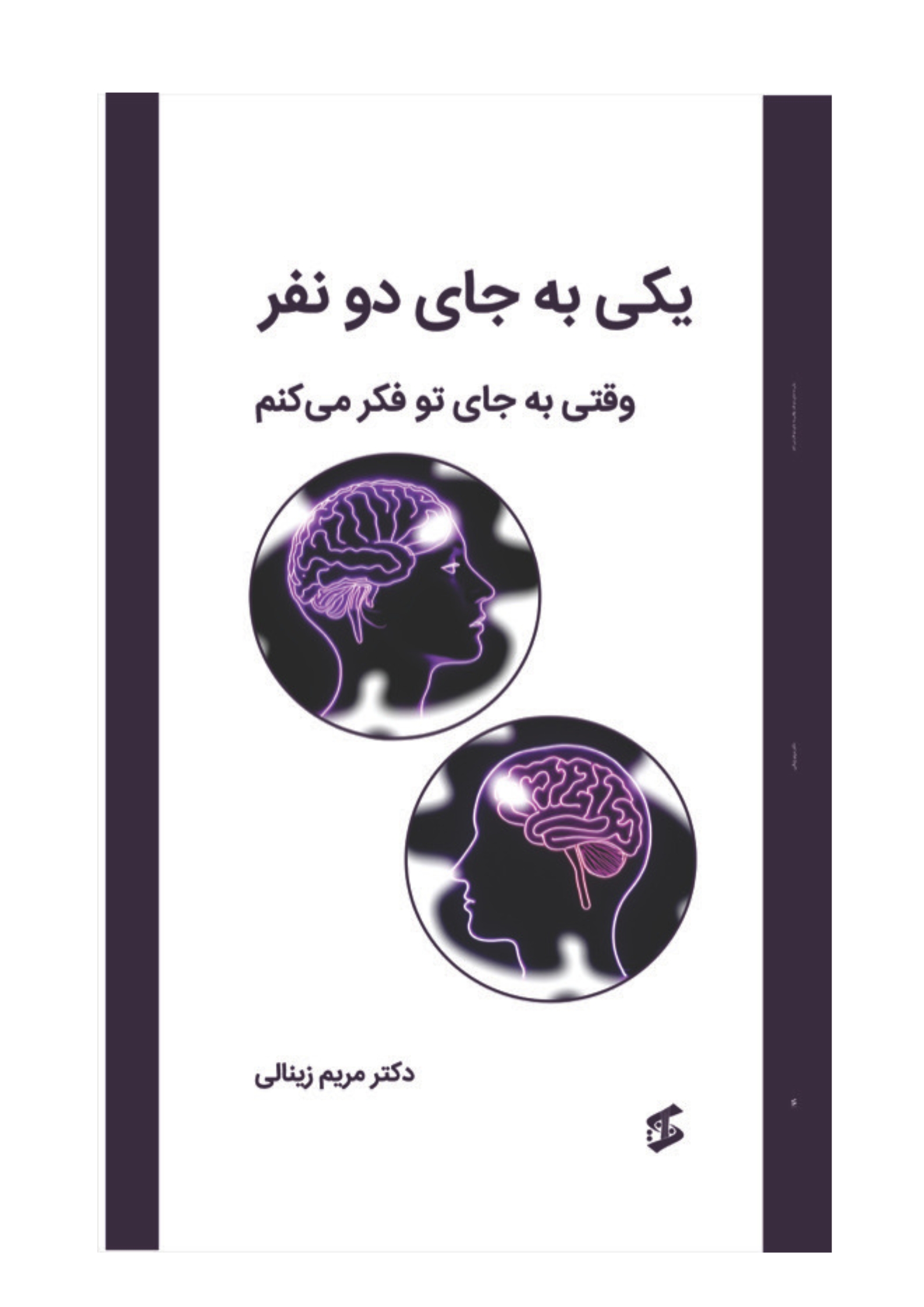 یکی به جای دو نفر؛ وقتی به جای تو فکر می‌کنم کتابی است درباره‌ی خطای رایجِ «فکر کردن به‌جای طرف مقابل» و پیامدهای خاموشِ آن در صمیمیت. دکتر مریم زینالی با زبانی روشن نشان می‌دهد چگونه سکوت‌های طولانی، پیش‌فرض‌ها، تعارف‌های بی‌جا و پنهان‌کاری‌های کوچک، مرزهای یک رابطه‌ی سالم را فرسوده می‌کنند و جای گفت‌وگوی صریح را می‌گیرند. این کتاب دعوتی است به بازگشت—به صداقت، شفافیت و همدلی؛ اینکه احساسات و نیازهایمان را بدون قضاوت بیان کنیم، حد و مرزهای عاطفی را بشناسیم و مسئولیت ذهن و دل خودمان را بر عهده بگیریم، نه اینکه مدام حدس بزنیم دیگری چه فکر می‌کند.